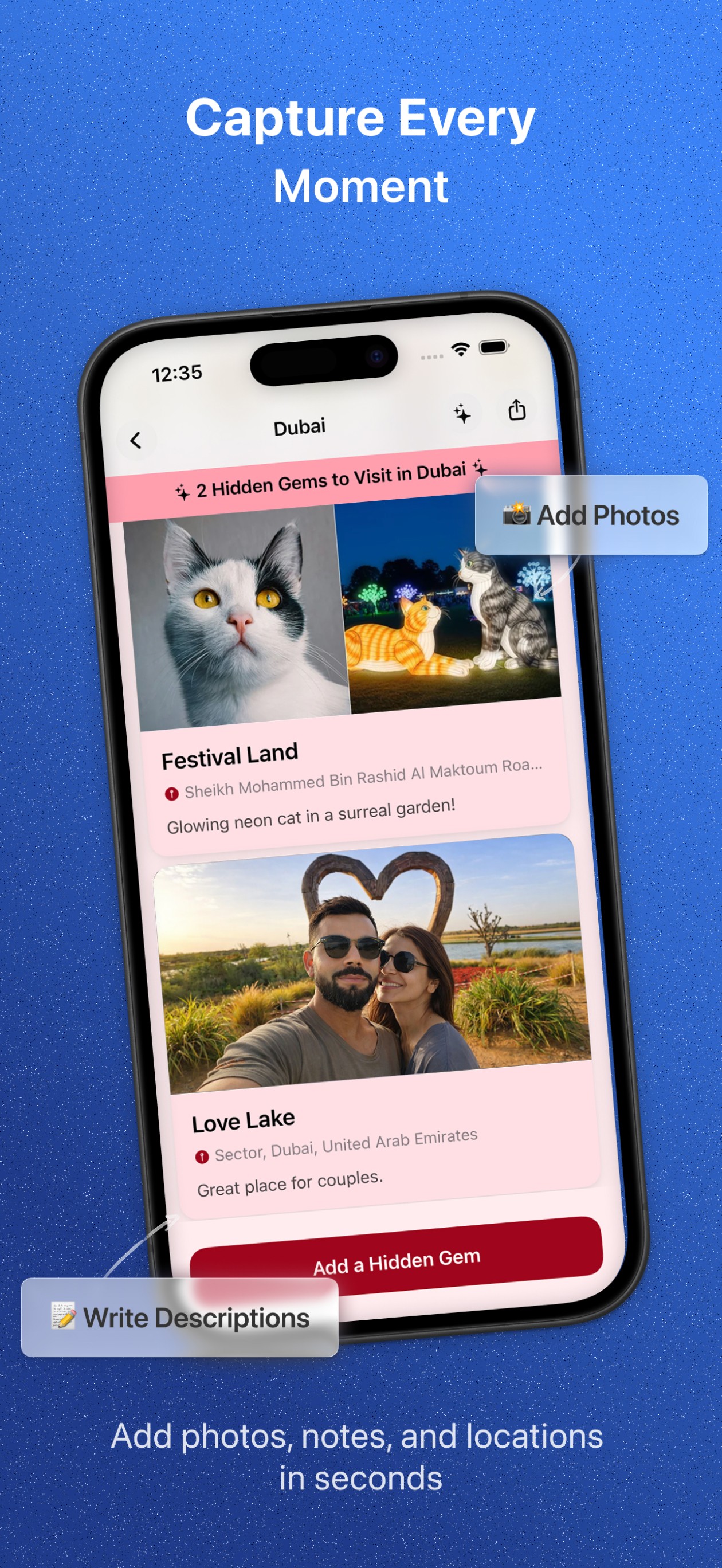 Add places in seconds.