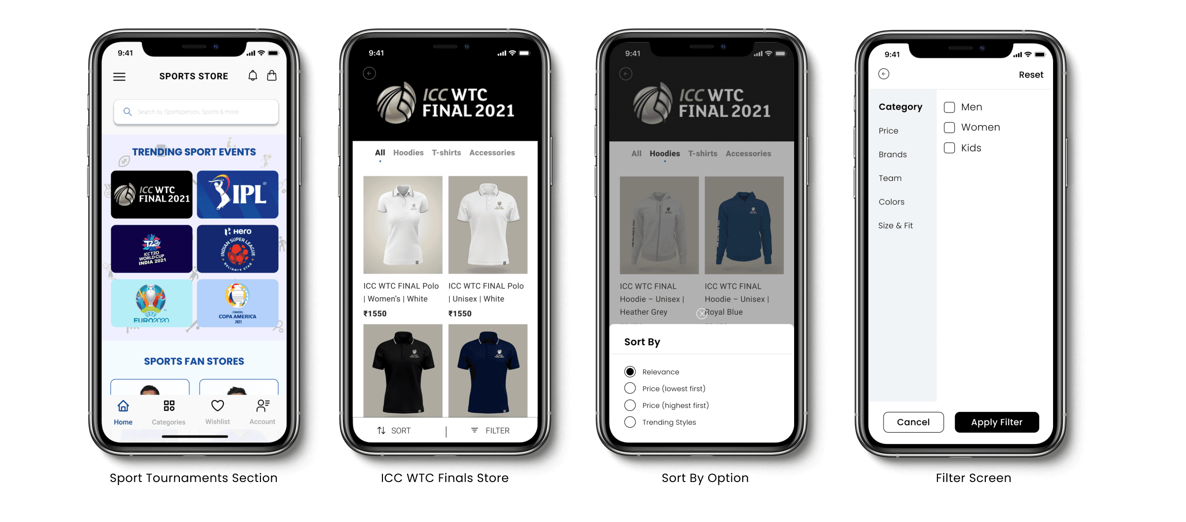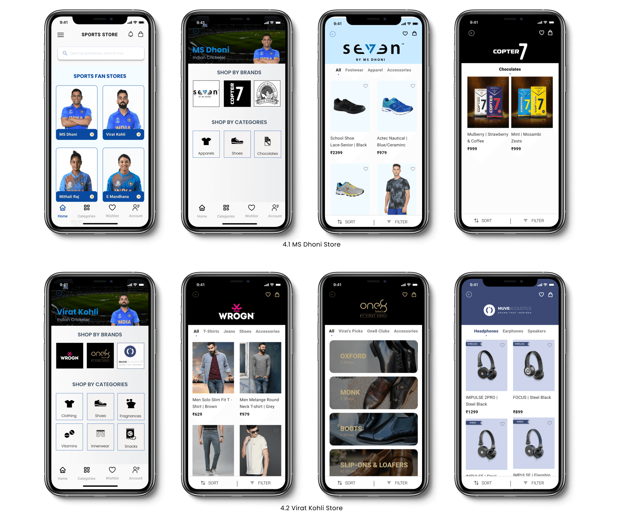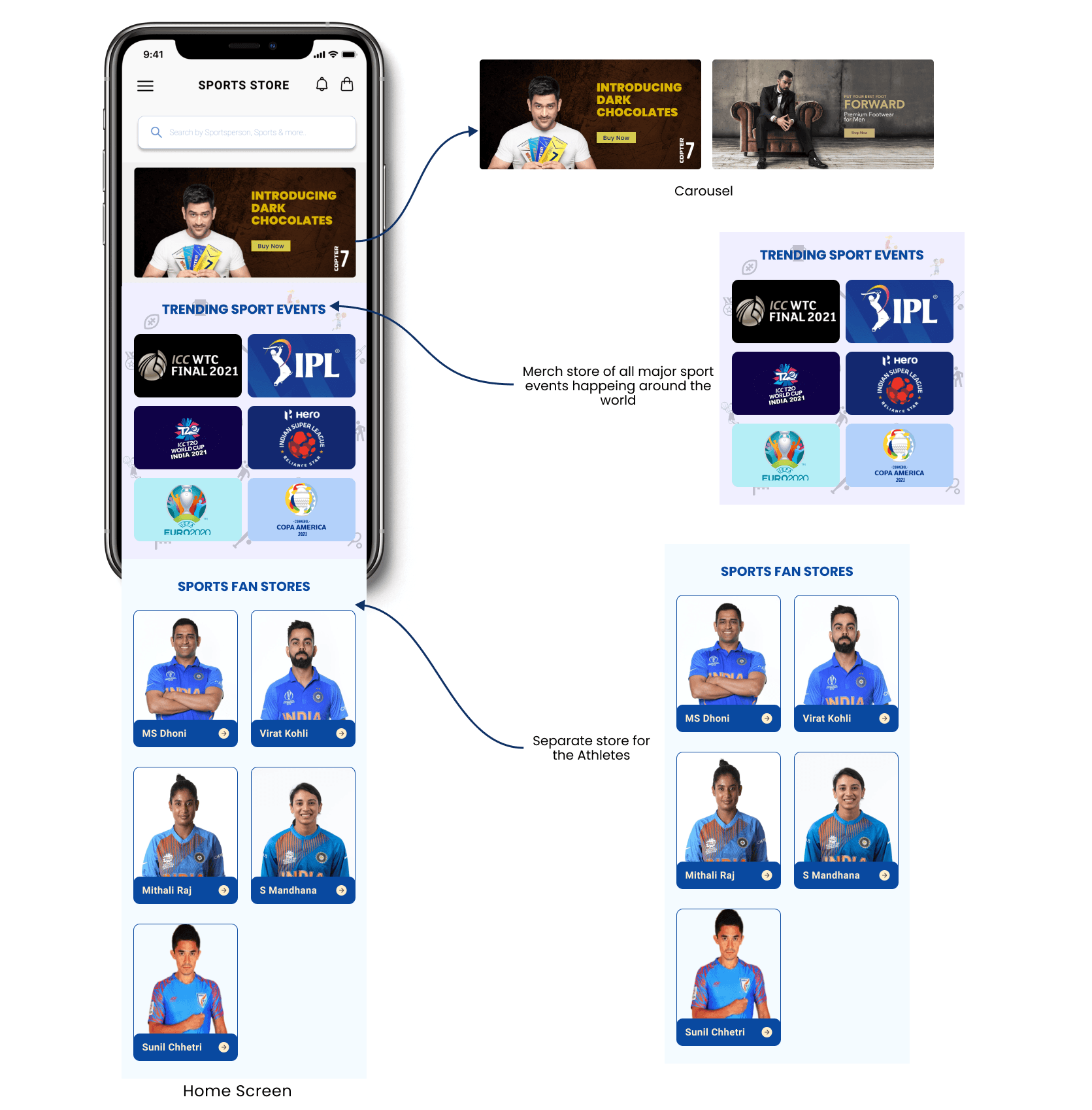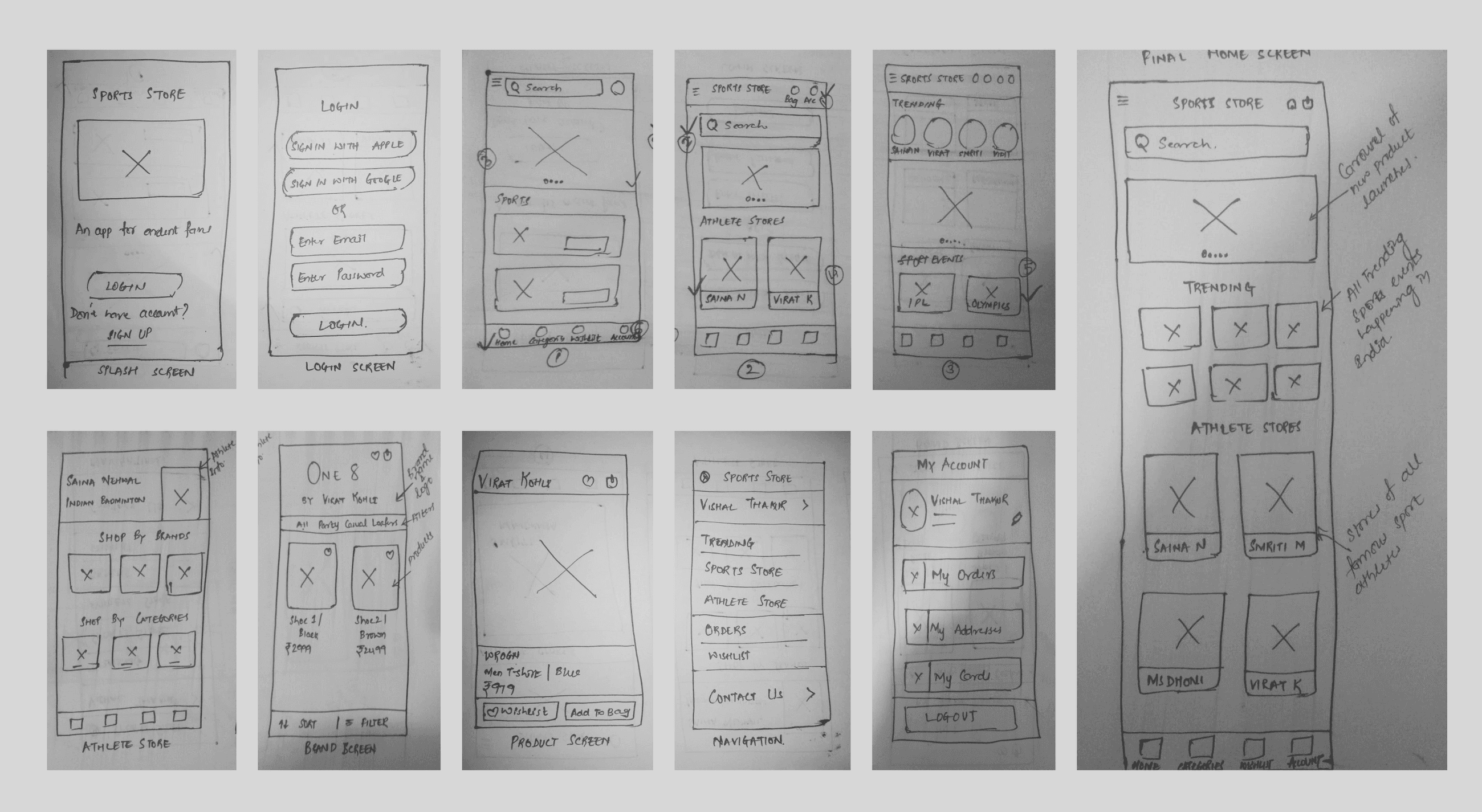 Based on research insights, I structured the app to guide users from onboarding to discovery and purchase with minimal friction.y product that is related to sports and athletes.