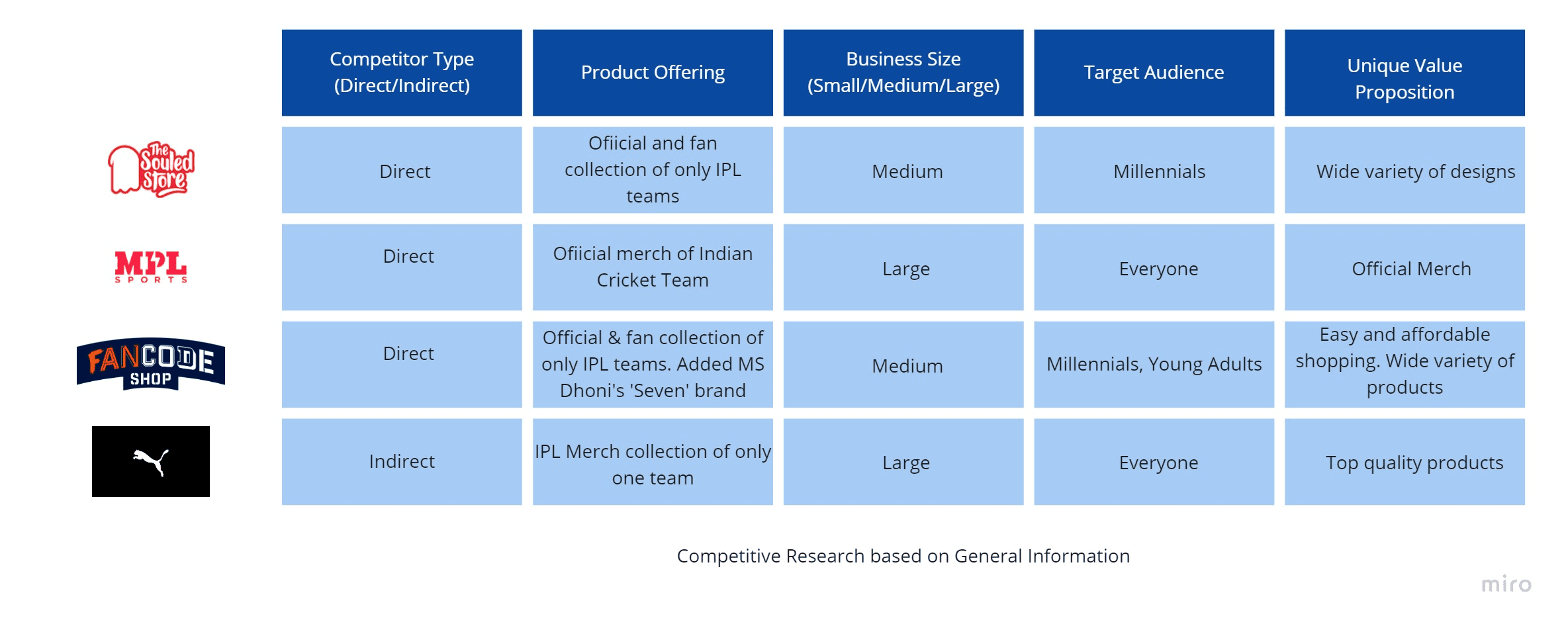 To understand the competitive landscape, I analyzed key direct and indirect competitors, comparing their product offerings, target users, and shopping experience across web and mobile.